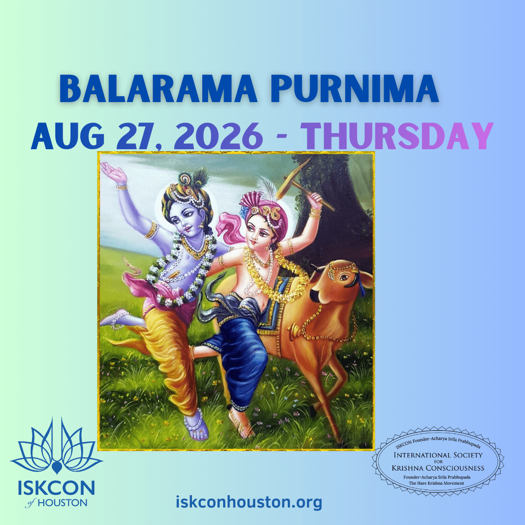 Lord Balarama's Appearance Day Balarama Purnima - Balarama Jayanti Fast till Noon Program starts at 6:30 PM "The Supreme Personality of Godhead,