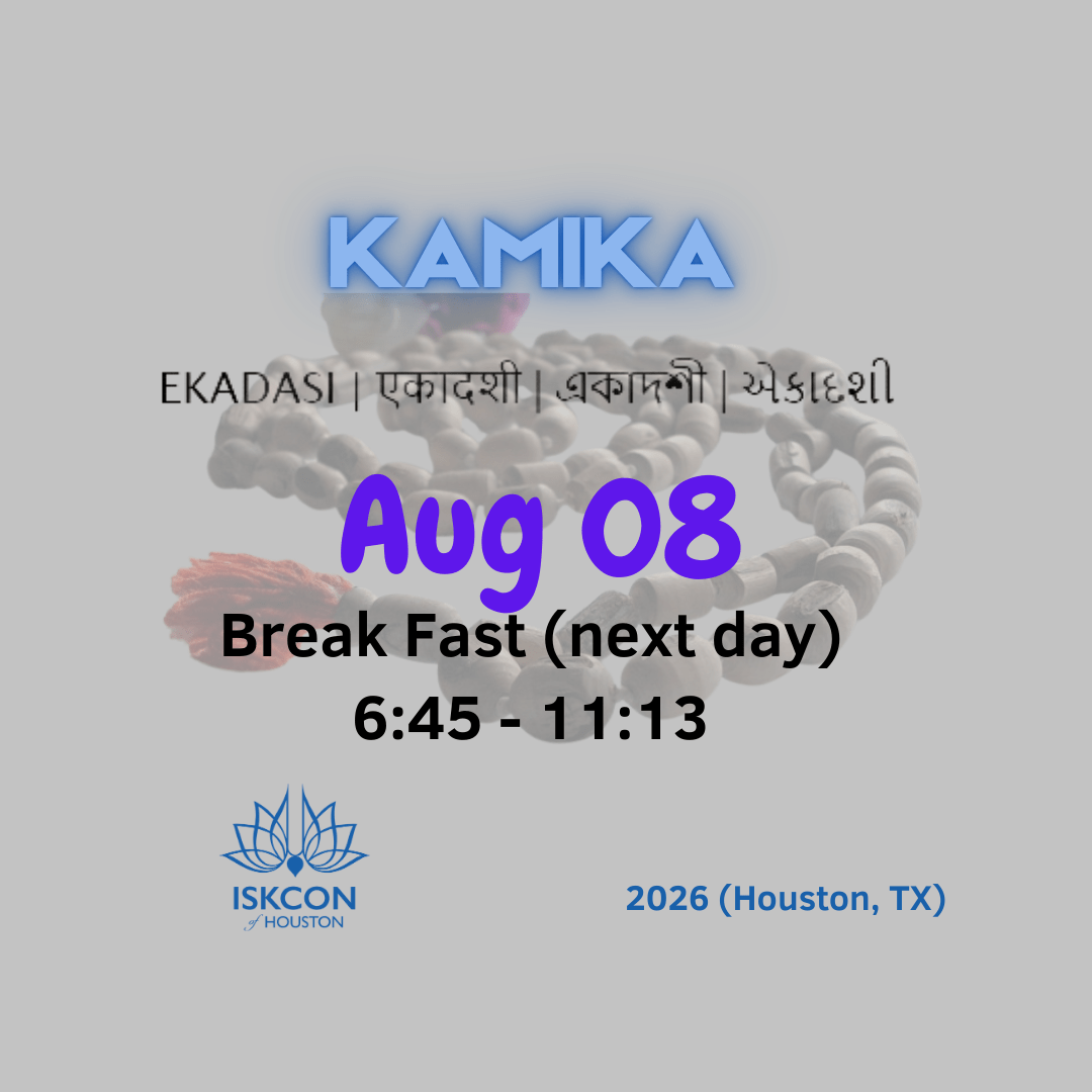 Kamika Ekadasi Break fast next day: 6:45 to 11:13 am READ MORE!