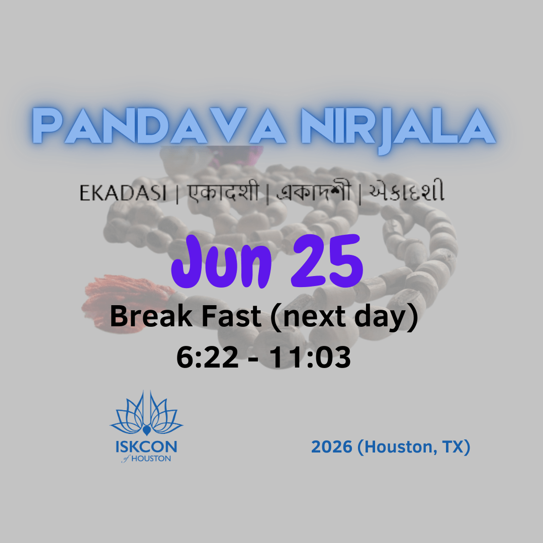 Pandava Nirjala Ekadasi Fast from everything - including water (as needed) Break fast next day: 6:22 to 11:03 READ MORE!